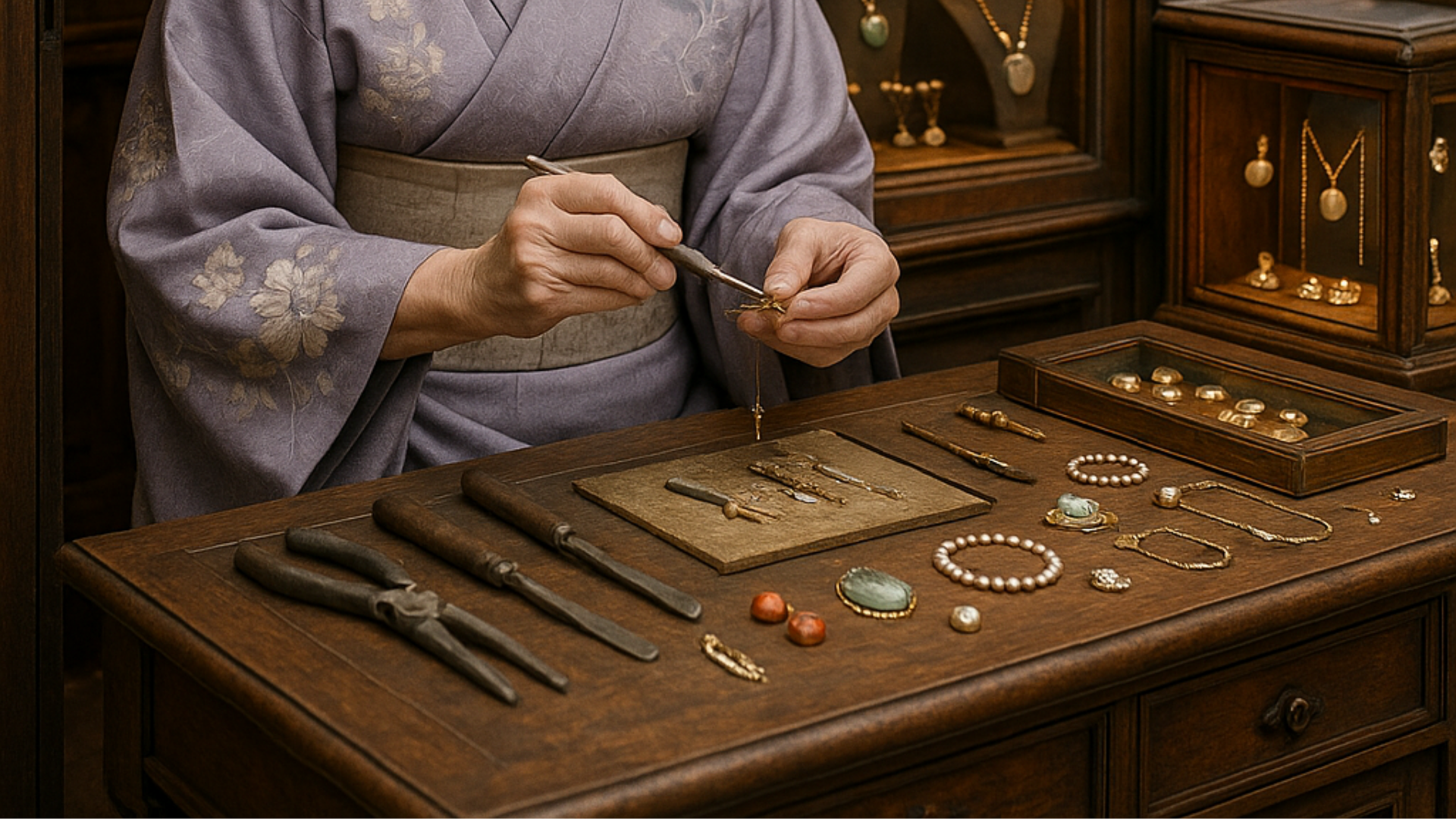 たかこは1984年、自宅で伝統的な日本の道具と技法を使って手作りのジュエリー制作を始めました。